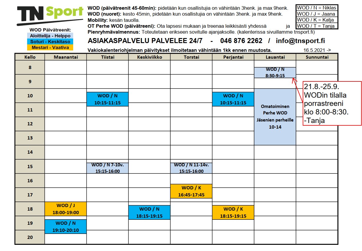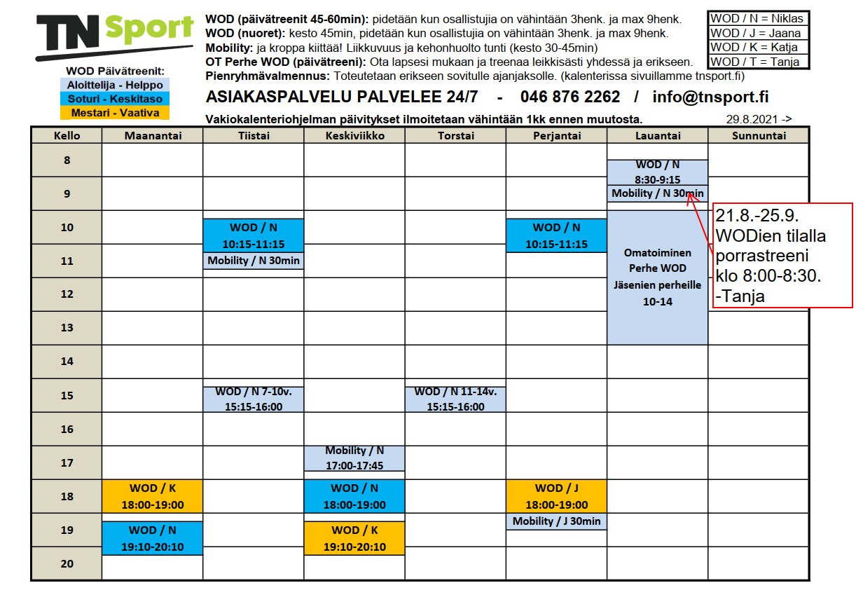 Pienet muutokset ja lisäykset syksyn Päivätreenikalenteriin.